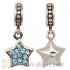 European Sterling Blue Pave Star Dangle With Blue Austrian Crystal