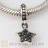 European Sterling Black Diamond Pave Star Dangle With Black Diamond Austrian Crystal