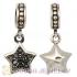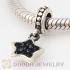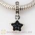 European Sterling Black Diamond Pave Star Dangle With Black Diamond Austrian Crystal