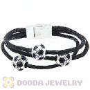 19CM Crystal Beads Black Braided Leather Bracelet With Magnetic Clasp