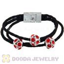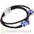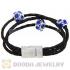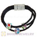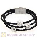 19CM Crystal Beads Black Braided Leather Bracelet With Magnetic Clasp