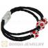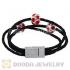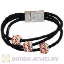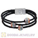 19CM Crystal Beads Black Braided Leather Bracelet With Magnetic Clasp