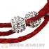 19CM Crystal Beads Red Braided Leather Bracelet With Magnetic Clasp