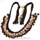Fashion Gold Chain Ladies Costume Jewelry Crystal Sideways Tassel Necklace Wholesale