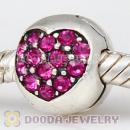 925 Sterling Silver Love Of My Life Clip Beads With Fuchsia Austrian Crystal