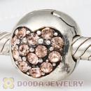 925 Sterling Silver Love Of My Life Clip Beads With Light Peach Austrian Crystal