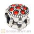 925 Sterling Silver European Turtle Charm Bead With Pave Light Siam Austrian Crystal