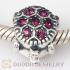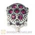 925 Sterling Silver European Turtle Charm Bead With Pave Fuchsia Austrian Crystal