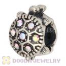 925 Sterling Silver European Turtle Charm Bead With Pave Crystal AB Austrian Crystal