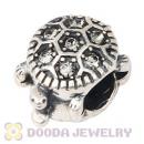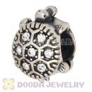 925 Sterling Silver European Turtle Charm Bead With Pave Clear Austrian Crystal