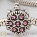 925 Sterling Silver European Turtle Charm Bead With Pave Light Rose Austrian Crystal