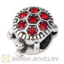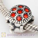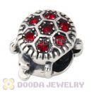 925 Sterling Silver European Turtle Charm Bead With Pave Light Siam Austrian Crystal