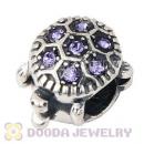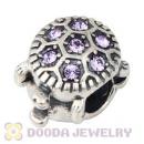 925 Sterling Silver European Turtle Charm Bead With Pave Violet Austrian Crystal