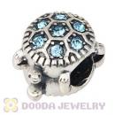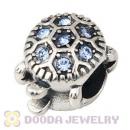 925 Sterling Silver European Turtle Charm Bead With Pave Light Sapphire Austrian Crystal