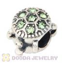 925 Sterling Silver European Turtle Charm Bead With Pave Peridot Austrian Crystal