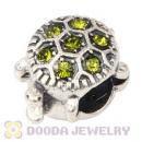 925 Sterling Silver European Turtle Charm Bead With Pave Olivine Austrian Crystal