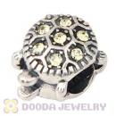 925 Sterling Silver European Turtle Charm Bead With Pave Jonquil Austrian Crystal