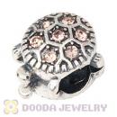 925 Sterling Silver European Turtle Charm Bead With Pave Light Peach Austrian Crystal