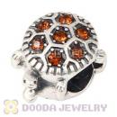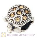 925 Sterling Silver European Turtle Charm Bead With Pave Light Colorado Topaz Austrian Crystal