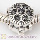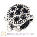 925 Sterling Silver European Turtle Charm Bead With Pave Black Diamond Austrian Crystal
