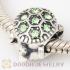 925 Sterling Silver European Turtle Charm Bead With Pave Olivine Austrian Crystal