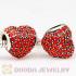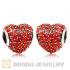European Sterling Light Siam Pave Heart With Light Siam Austrian Crystal Charm