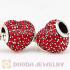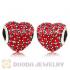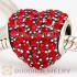 European Sterling Pave Heart Red Heart With Austrian Crystal Charm