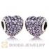 European Sterling Amethyst Pave Heart With Amethyst Austrian Crystal Charm