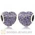European Sterling Violet Pave Heart With Violet Austrian Crystal Charm