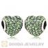 European Sterling Emerald Pave Heart With Emerald Austrian Crystal Charm