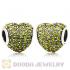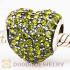 European Sterling Jonquil Pave Heart With Jonquil Austrian Crystal Charm