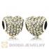 European Sterling Light Peach Pave Heart With Light Peach Austrian Crystal Charm
