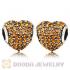 European Sterling Light Colorado Topaz Pave Heart With Light Colorado Topaz Austrian Crystal Charm