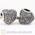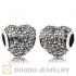 European Sterling Black Diamond Pave Heart With Black Diamond Austrian Crystal Charm