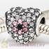 European Sterling Light Rose Pave Heart With Light Rose Austrian Crystal Charm