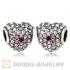 European Sterling Light Siam Pave Heart With Light Siam Austrian Crystal Charm