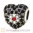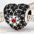 European Sterling Black Diamond Pave Heart With Black Diamond Austrian Crystal Charm