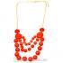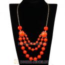 Fashion Silver Chains Three Layers Coral Red Resin Bubble Bib Statement Necklaces Wholesale