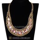Chunky Gold Chain Resin Rhinestone Crystal Costume Jewelry Bib Necklace