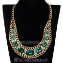 Chunky Gold Chain Resin Rhinestone Crystal Costume Jewelry Bib Necklace