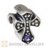European Antique Sterling Silver Cross Charm Bead with Amethyst Austrian Crystal