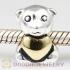European Sterling Silver Gold Plated Love Struck Charm Bead with Crystal Austrian Crystal