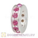 Sterling Silver European Spacer Beads with Fuchsia Austrian Crystal