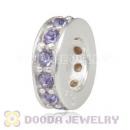 Sterling Silver European Spacer Beads with Violet Austrian Crystal