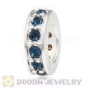Sterling Silver European Spacer Beads with Sapphire Austrian Crystal
