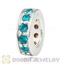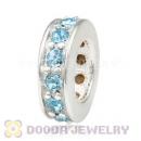 Sterling Silver European Spacer Beads with Blue Zircon Austrian Crystal