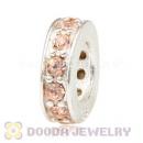 Sterling Silver European Spacer Beads with Light Rose Austrian Crystal