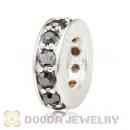 Sterling Silver European Spacer Beads with Black Diamond Austrian Crystal