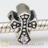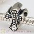 European Antique Sterling Silver Cross Charm Bead with Black Diamond Austrian Crystal