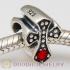 European Antique Sterling Silver Cross Charm Bead with Black Diamond Austrian Crystal